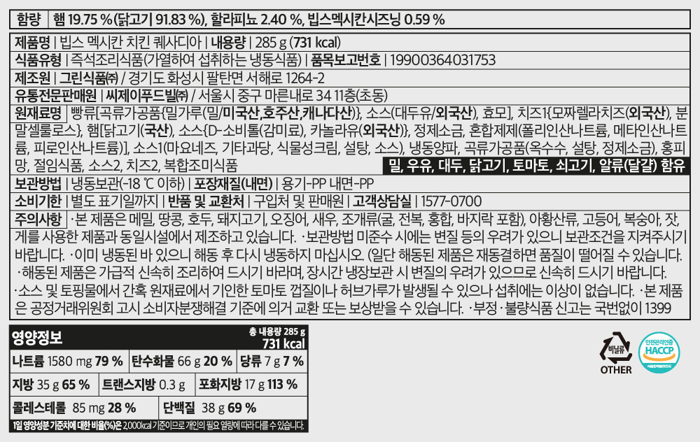 CJ프레시마켓,[빕스] 멕시칸치킨 퀘사디아 1팩