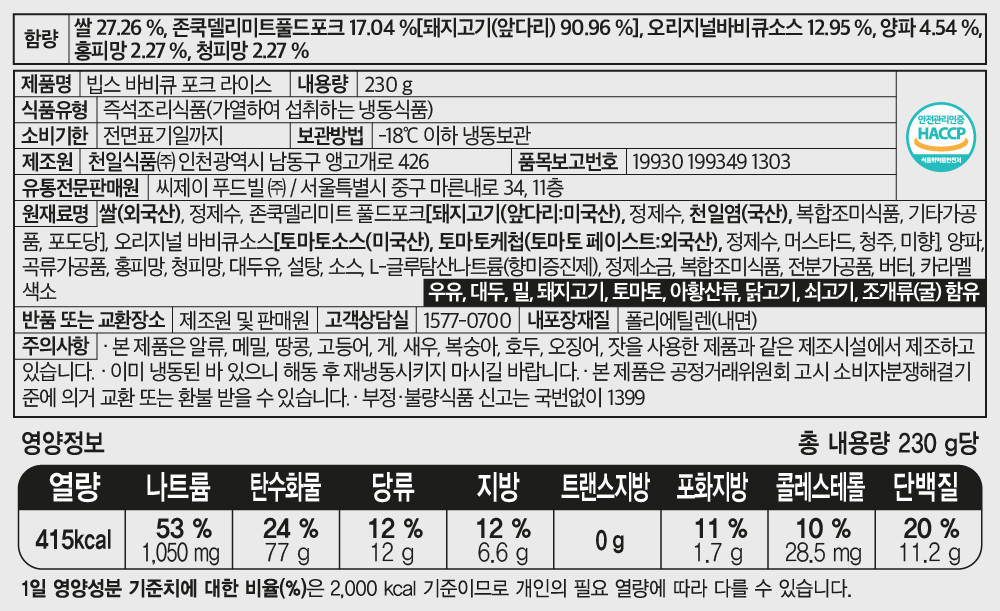 CJ프레시마켓,[임박특가 ~12/5일까지 바비큐 포크 라이스 10인분 (230gX10팩)