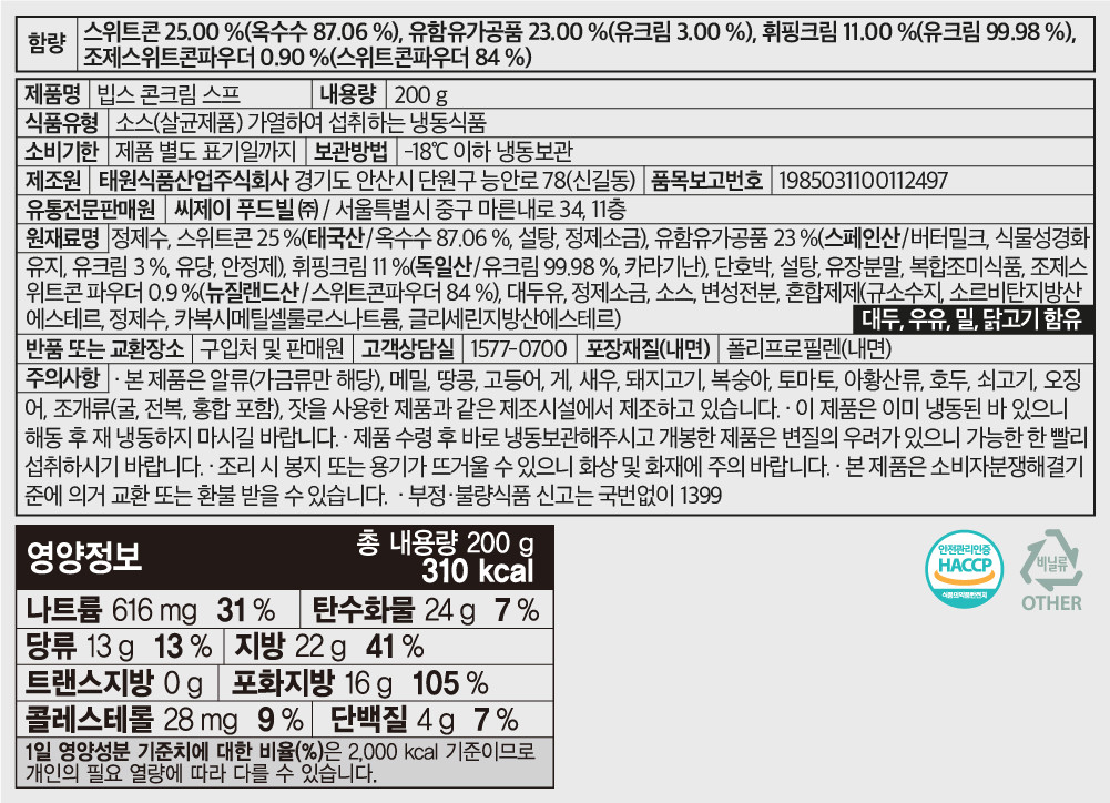 CJ프레시마켓,빕스 콘크림스프 200g