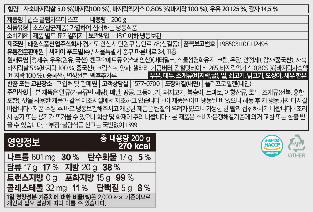 CJ프레시마켓,빕스 클램차우더스프 200g