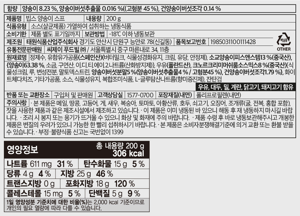 • 영양성분(영양성분 표시대상 식품에 한함)
