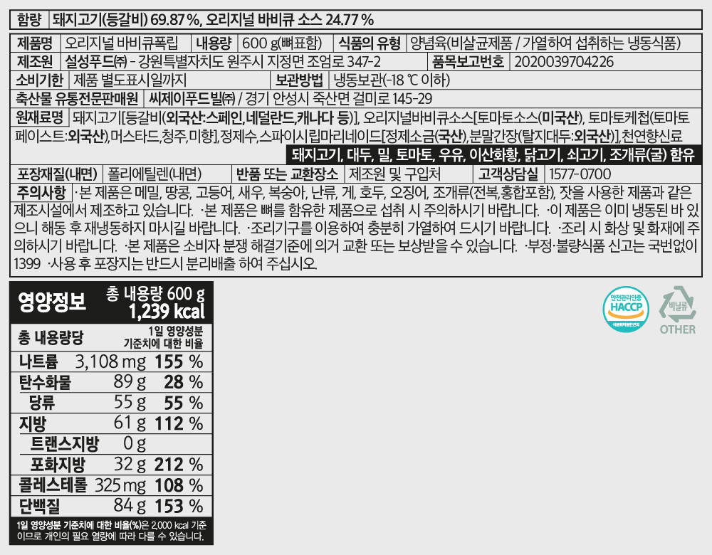 • 원재료명 (농수산물의 원산지 표시 등에 관한 법률에 따른 원산지 표시 포함) 및 함량