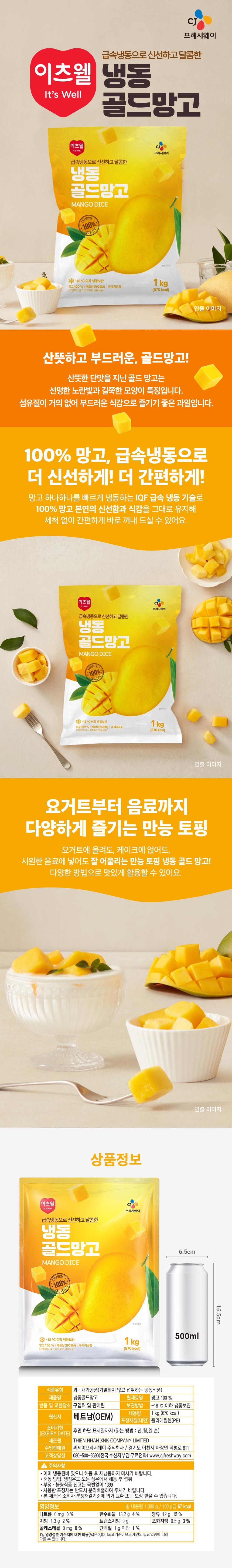 CJ프레시마켓,[직영특가]이츠웰 냉동골드망고 1kg (다이스 20mm)
