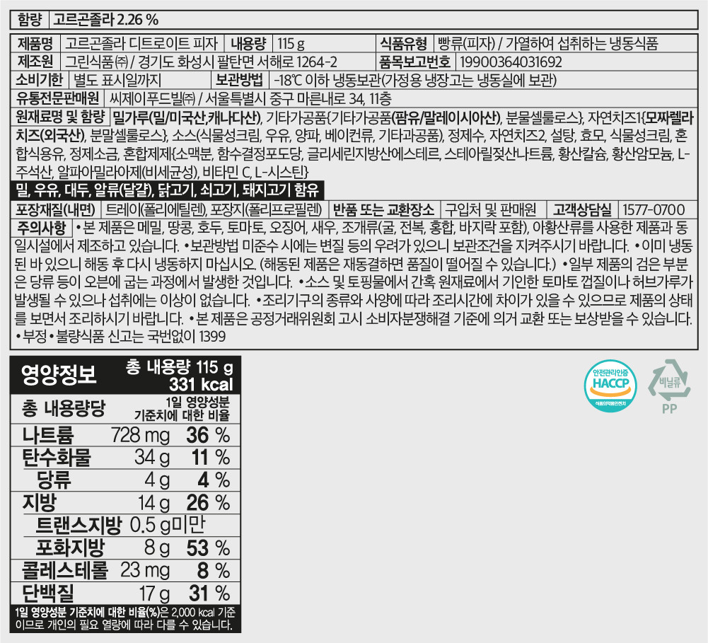 CJ프레시마켓,빕스 고르곤졸라 디트로이트피자